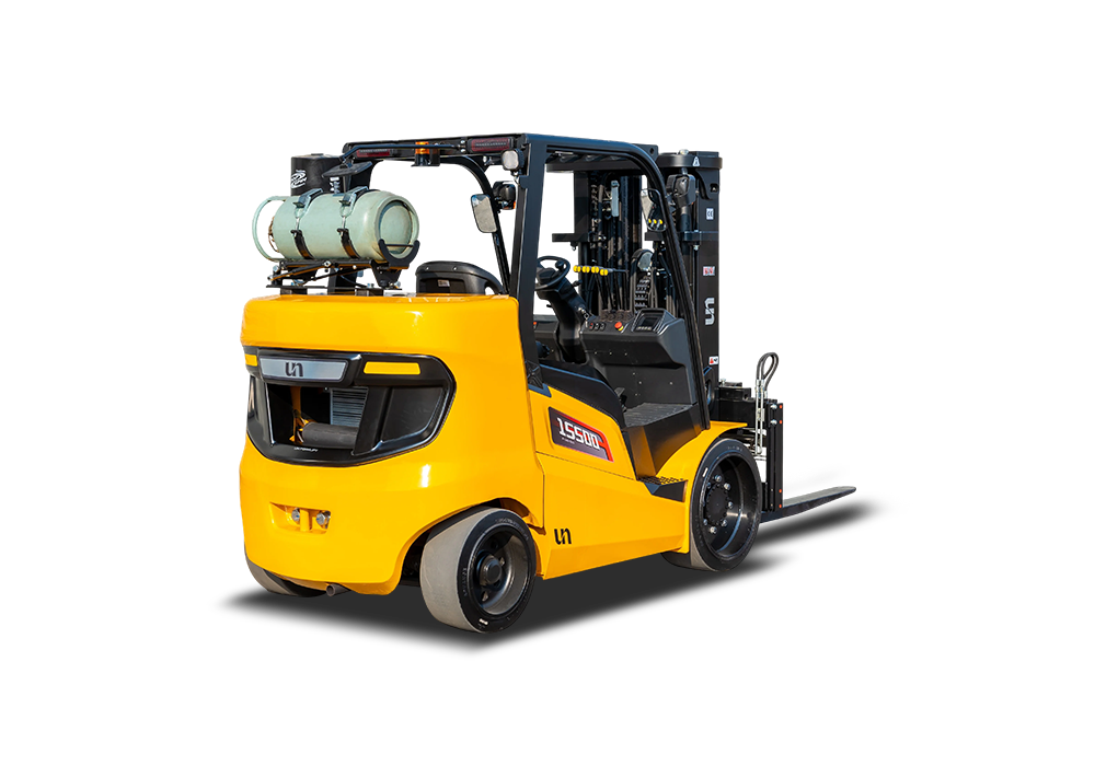 Der für nordamerikanische Betriebsumgebungen entwickelte LPG CushionTire Forklift der F-Serie kombiniert starke Hubfähigkeit mit kompaktem Design.