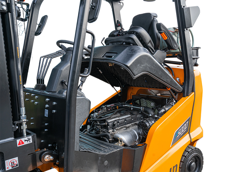 ● Standardmäßig ausgestattet mit herunterklappbarer LPG-Tankhalterung, die einen einfachen Austausch des Kraftstofftanks ermöglicht.