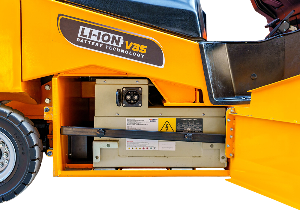 Lithium-Ionen-Gabelstapler der V-Serie — der Lithium-Ionen-Gabelstapler der zweiten Generation mit brandneuem Design. Dieser neue Gabelstapler nutzt die innovative und zuverlässige EVE-Zellentechnologie mit Lithiumbatterie, einen aus Italien importierten ZAPI-Controller und vollständige Wechselstrommotoren. Die Kombination aus Superleistung und Haltbarkeit macht ihn zu einem Ersatz für den IC-Gabelstapler.
