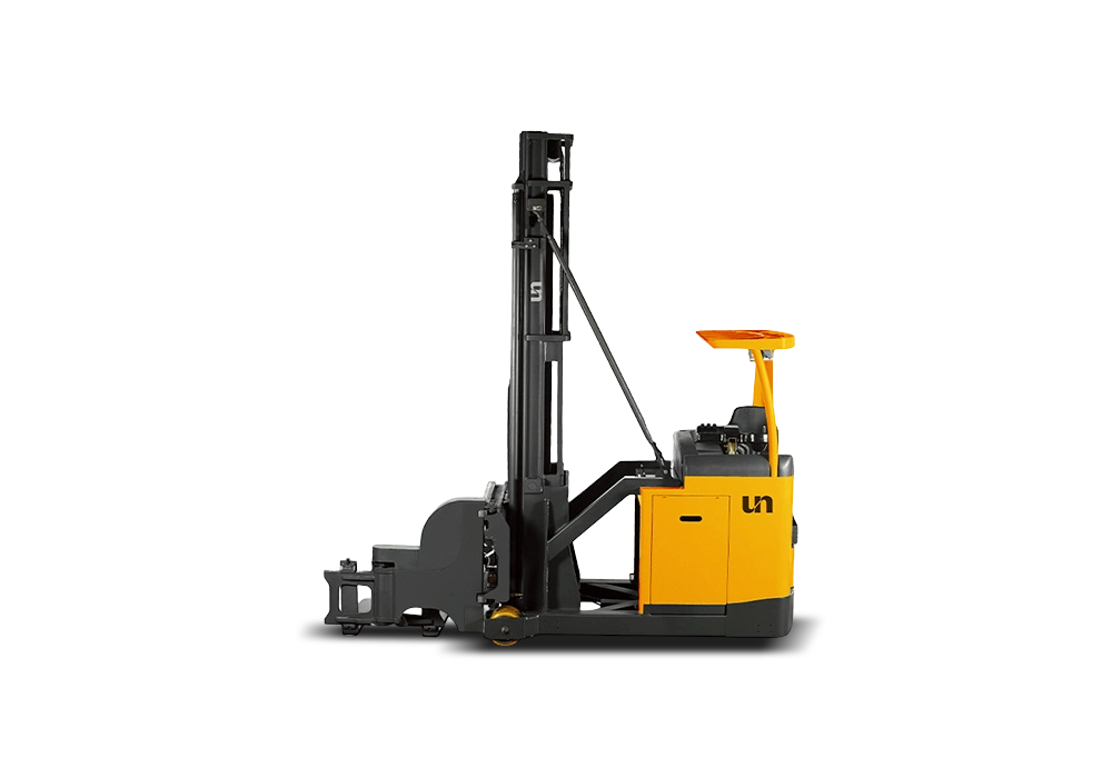 UN Man-down VNA ist eine weitere optimierte Maschine für Ihre Lagerlösung. Es verfügt über eine Kapazität von 1.300 kg und eine Hubhöhe von bis zu 10.000 mm und ist die ideale Multifunktionsmaschine zum Aufnehmen, Transportieren und Stapeln von Paletten mit optimierter Effizienz und Raumausnutzungsverhältnis. Mit der Unterstützung des CAN-BUS-Systems bietet dieser LKW die Verfügbarkeit einer breiten Palette von Sicherheitsfunktionen.